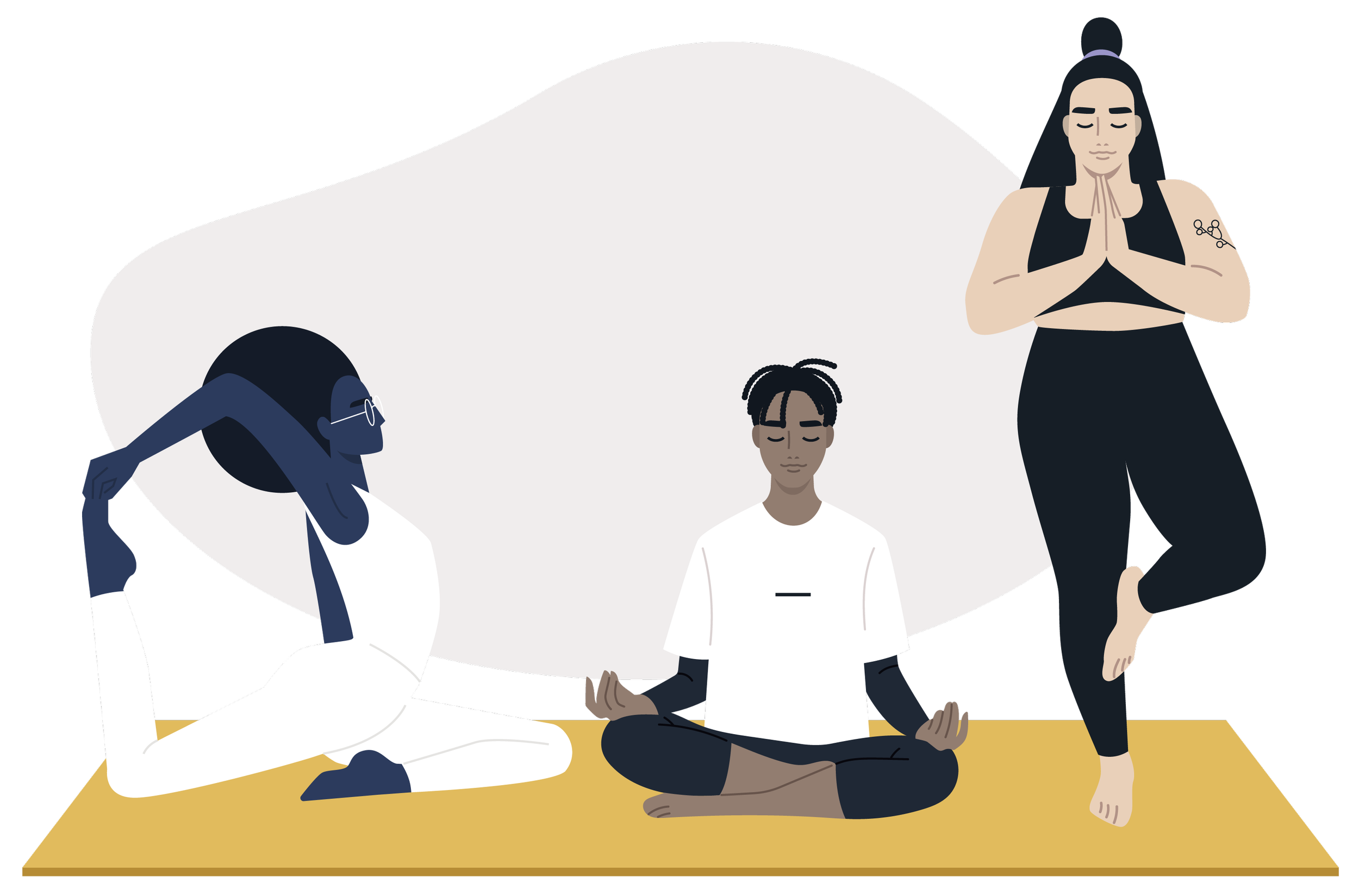 The key addition was the illustrated characters. I styled a cast of figures representing the symposium's healing-centered activities: people meditating, doing yoga, creating art, gathering in conversation, a person in a wheelchair included naturally in the community. These illustrations do the emotional work that photography couldn't — they represent healing activities abstractly enough to feel welcoming rather than prescriptive, while adding warmth to materials about a difficult subject.